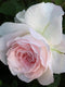 The beautiful shrub rose has hybrid tea-looking buds and blooms of light pink, slightly fragrant flowers. It is a lovely well-rounded shrub with dark green foliage. One of our favorites. It looks delicate but is a tough, hardy rose.