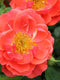Continuous blooming rose of coral, salmon orange, yellow, think of a summer sunset! Dark glossy green foliage set of these bright colored blooms