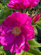 Magenta colored blooms, perhaps more red than magenta. Semi-double blooms of good size. Healthy rugosa foliage and wonderful red hips in the fall.