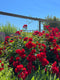 A wonderful bright red bloom. 15 to 20 petals per bloom, small, double occurring in clusters. Blooms in flushes throughout the season. Spreading habit with a height of 2 feet and width of 5 to 7 feet. Excellent for draping over a wall or planted on a bank. Very disease resistant. Can be grown in the ground or in a container (container requires winter protection).