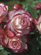 This rose has truly outstanding color and a nice rounded habit that grows well in all climates. The bloom color holds nicely in the heat and will last all season long. The dark foliage makes a striking contrast to the bi-color flowers.